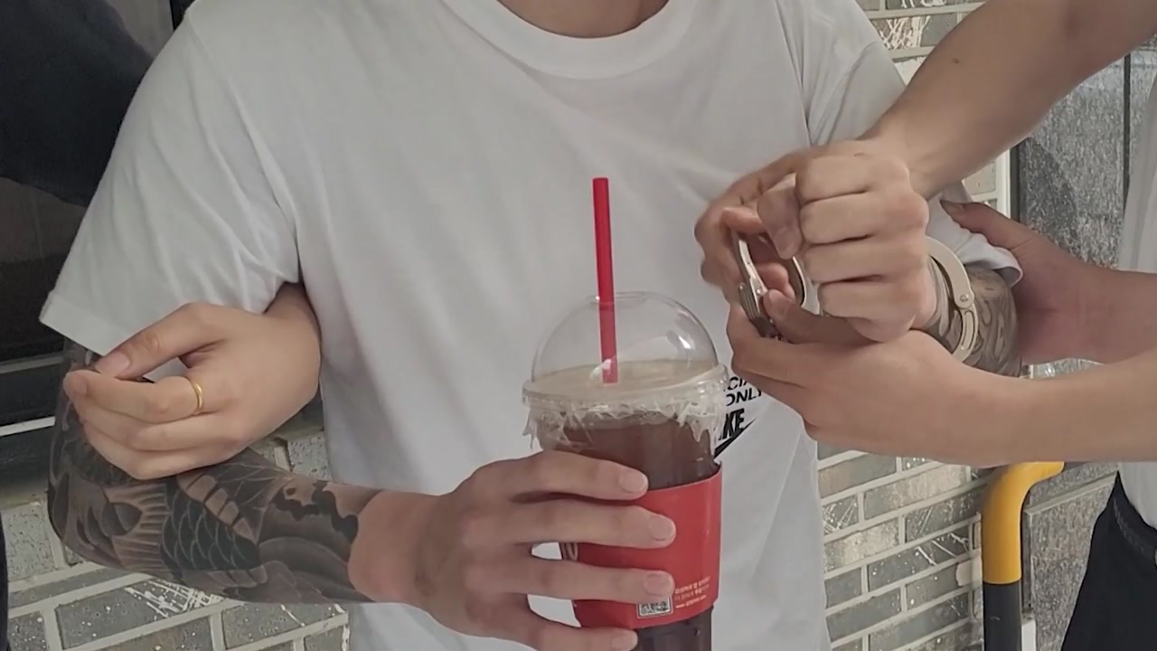 승용차에 탄 남성을 경찰이 긴급 체포합니다.
