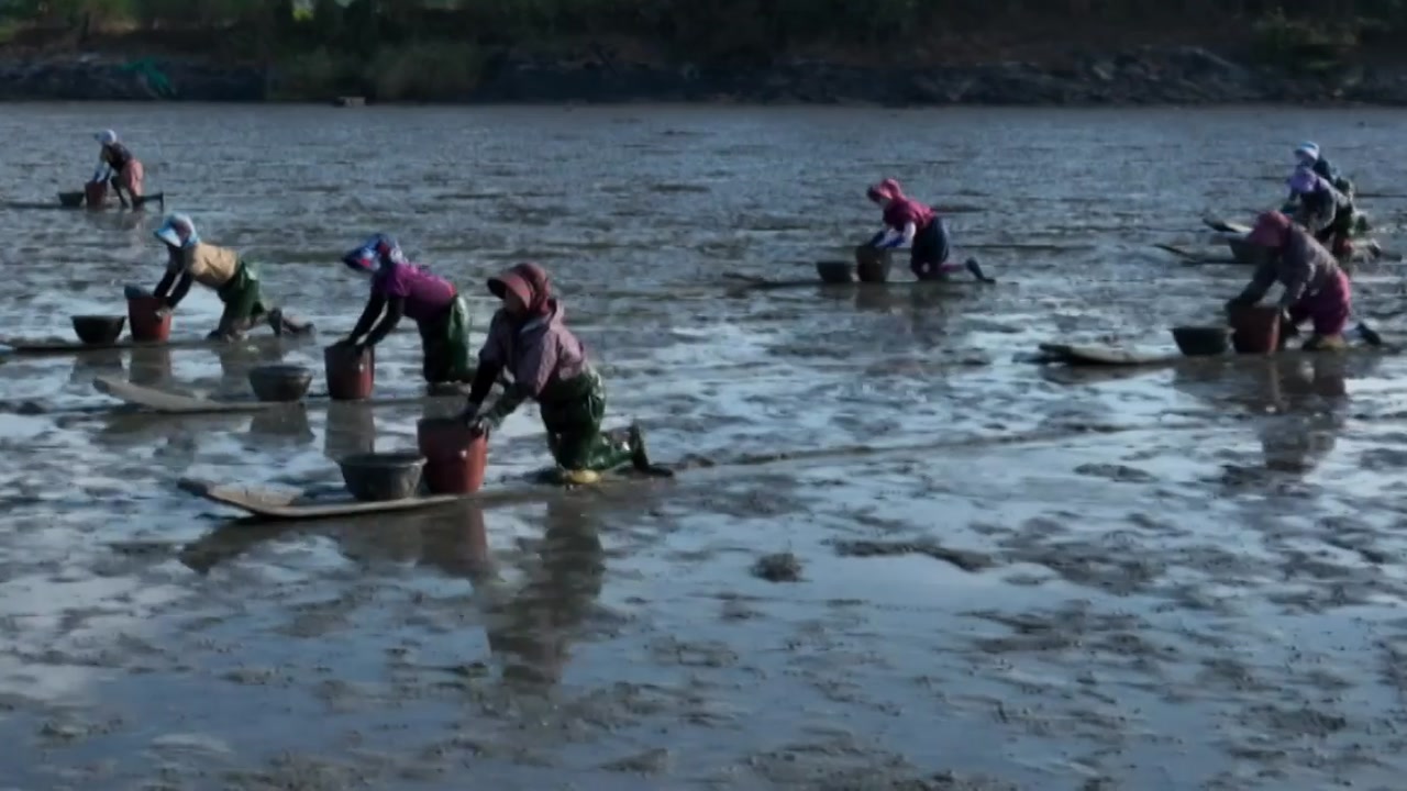 제철을 맞은 꼬막을 캐려는 손길입니다.