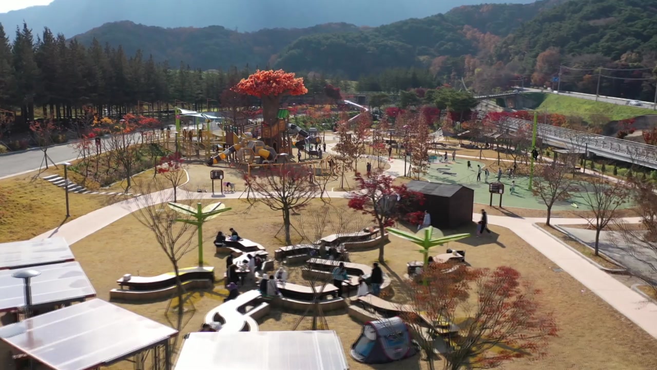 알록달록 단풍이 내려앉은 내장산 문화광장에 만들어진 '정읍 기적의 놀이터'.