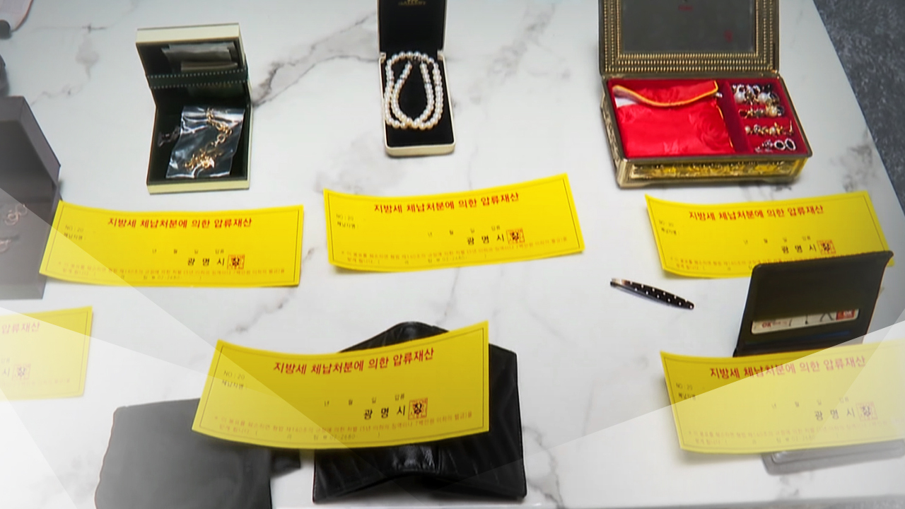 아침 7시 반부터 시작한 수색이 30분 넘게 이어지고, 명품 가방 등 압류 직전에야 밀린 세금을 냅니다.
