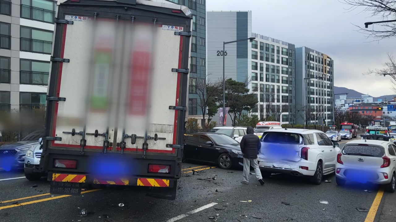 오늘(12일) 오전 9시쯤 울산 중구 달빛로 서동로터리 인근에서 3.5톤 트럭이 차량을 잇달아 들이받았습니다.