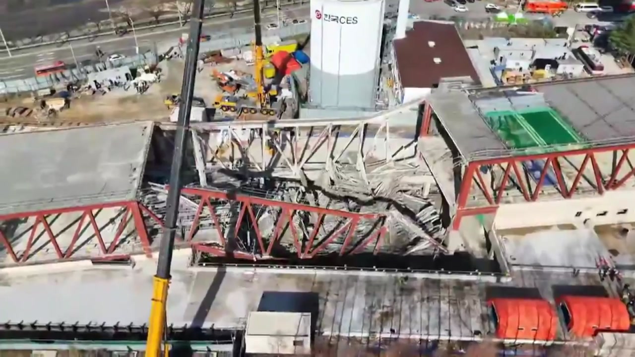 건물과 건물을 잇는 길이 48m 폭 20m 구간의 철제 구조물이 지하 2층까지 연쇄적으로 무너졌습니다.