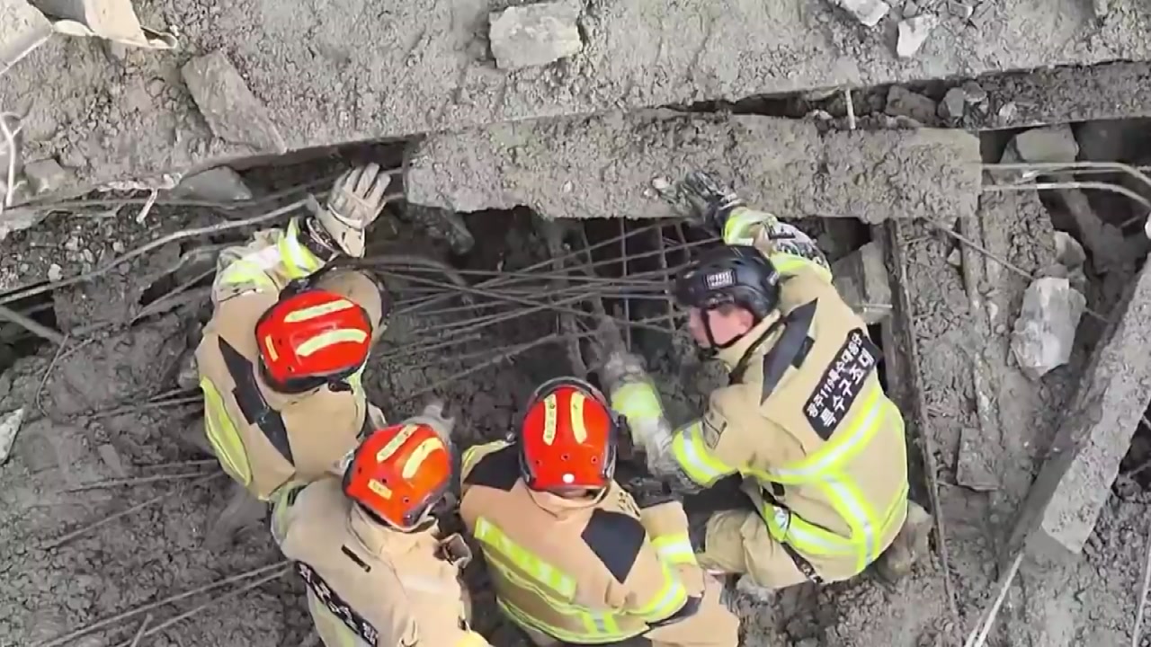 대형 철제구조물과 콘크리트 더미가 황급히 달아나는 작업자를 덮칩니다.