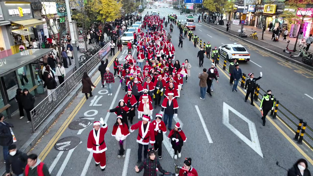 산타 복장을 한 시민들이 도로 위 행진에 나섰습니다.