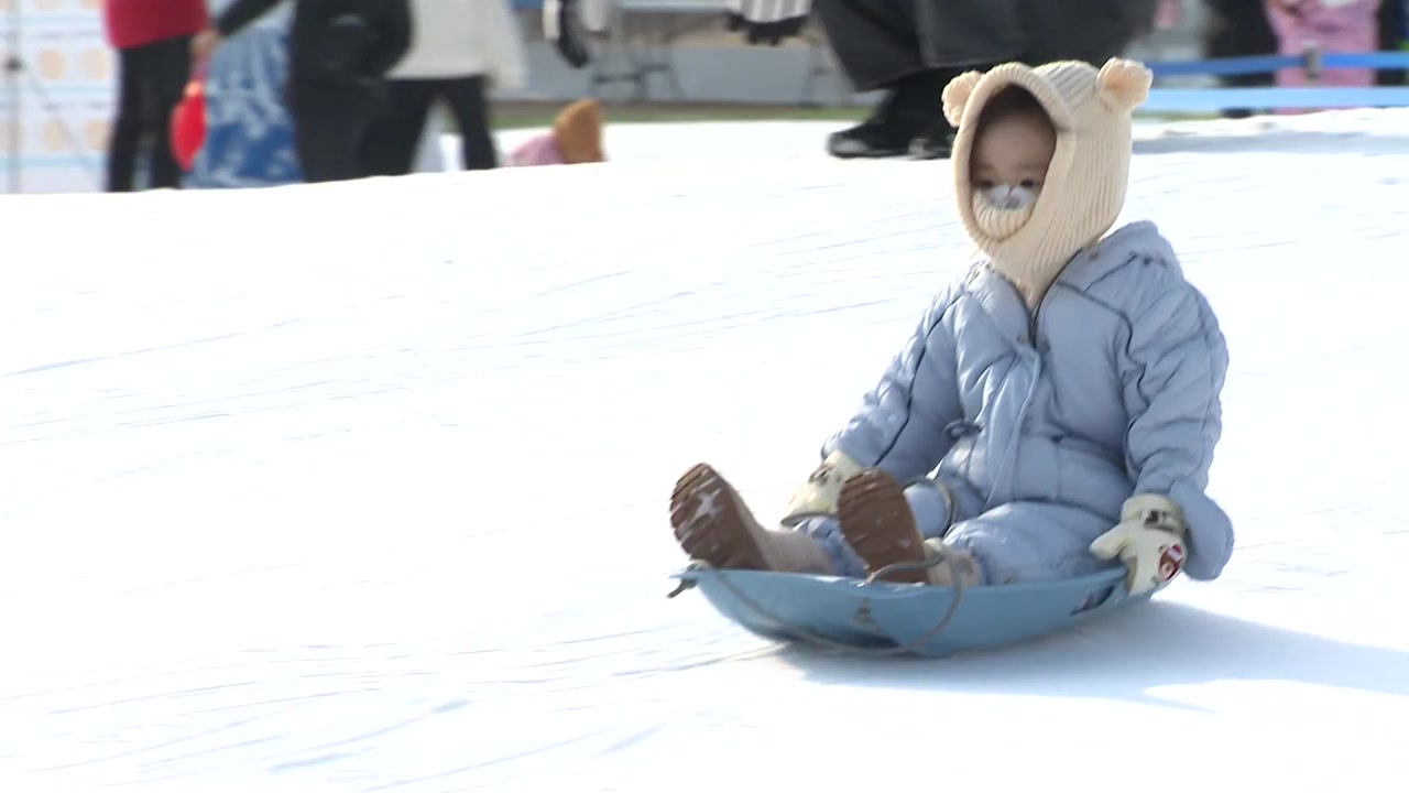 [조은우·박해영 / 충북 청주시 사천동 : 아이들이 눈을 좋아해서 되게 좋아하는 것 같아요. 너무 잘 꾸며놔서 잘 놀다 갈 것 같아요. 썰매도 좋아하고 작년에도 왔었는데 튜브 돌아가는 썰매나 뭐 이런 것 에어 바운서도 되게 좋아하더라고요.]