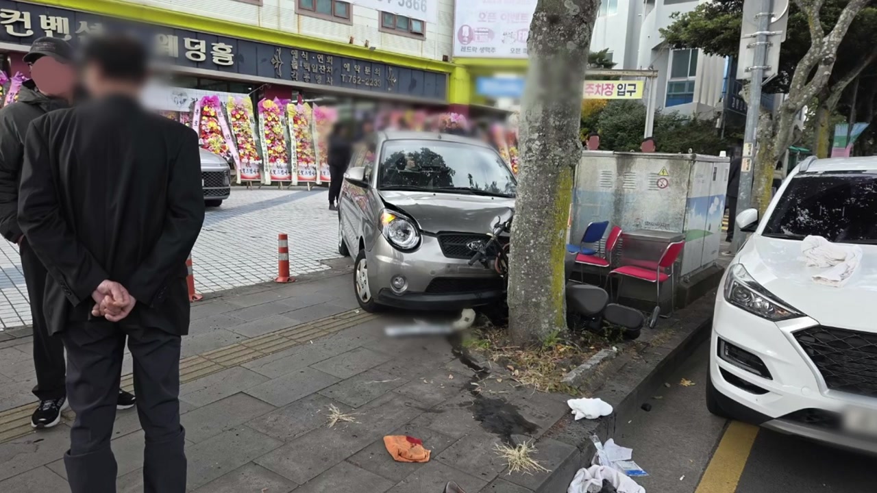 어제(28일) 오후 2시 40분쯤 제주 서귀포시 서홍동에서 80대 A 씨가 몰던 경차가 인도로 돌진했습니다.