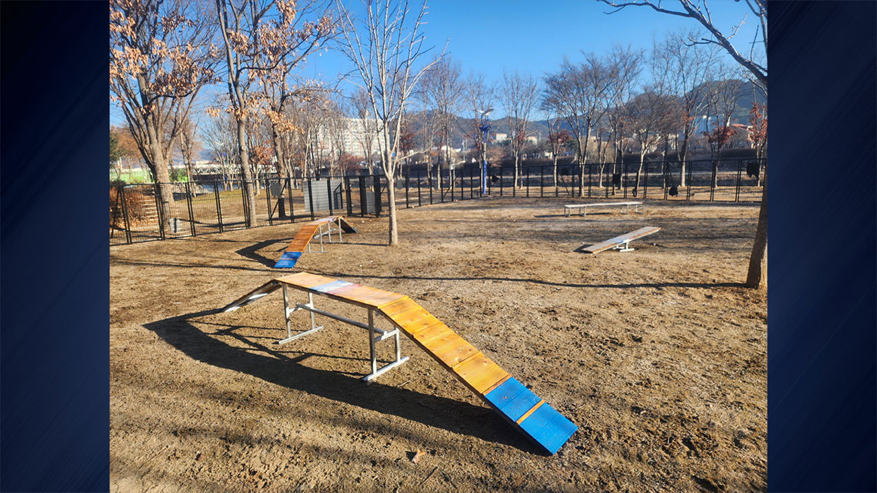 놀이터에는 반려견의 안전한 활동을 위한 이동식 펜스가 설치됐으며, 반려견의 활동성을 고려한 놀이기구와 보호자를 위한 그늘막과 의자 등 편의시설도 함께 조성됐습니다.