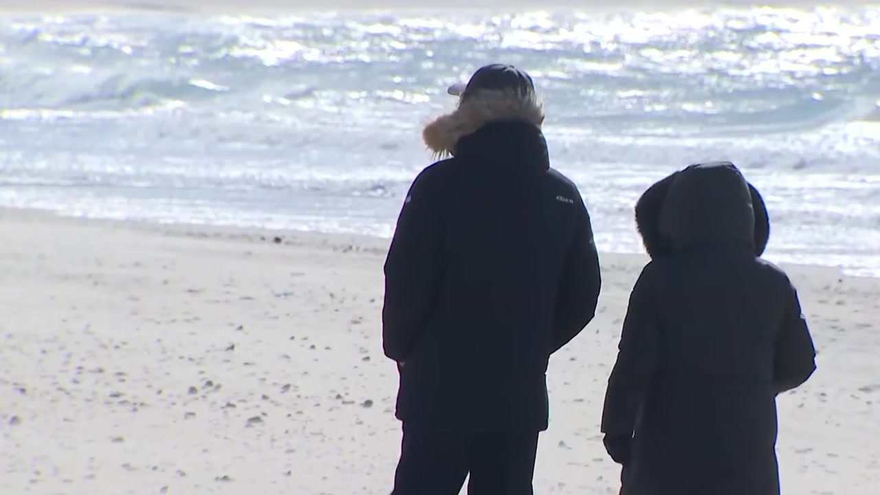 해넘이를 가까이서 보려는 시민들이 바위 앞까지 가기도 하지만, 현재 만조라 물이 가득 차 있어 바위까지 접근이 어려운 상황입니다.