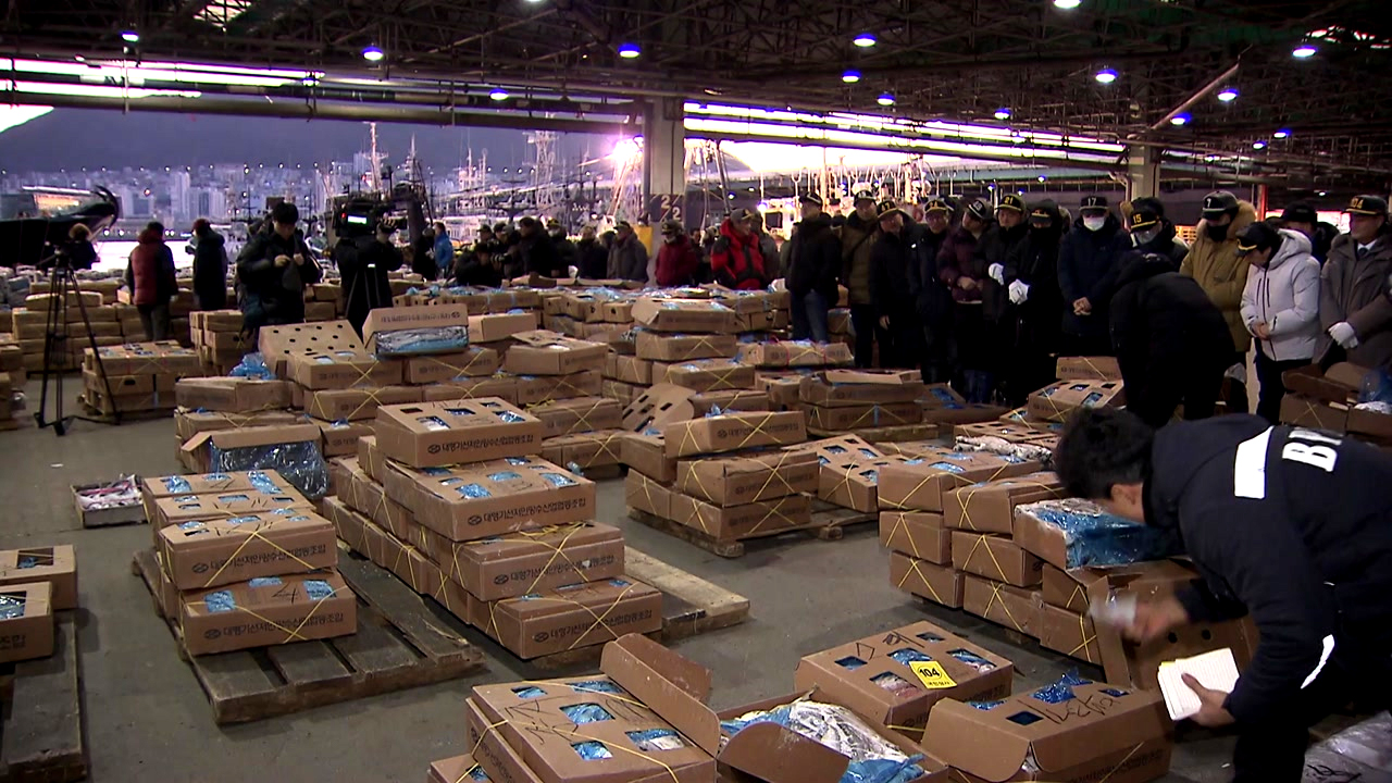 새해 첫 경매 열린 부산공동어시장...'풍어 기원'