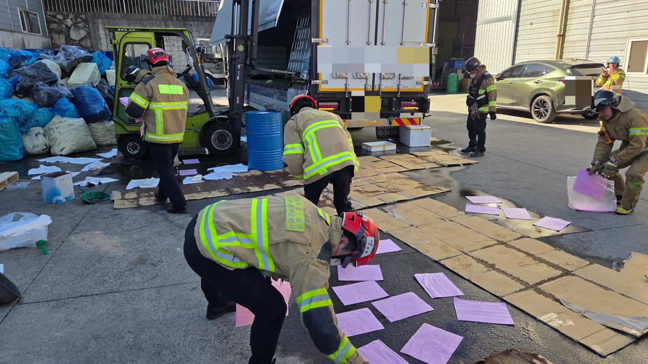 오늘(6일) 오전 11시 반쯤 경북 경주시 외동읍의 자동차 부품 공장에서 화물차에 실려 있던 45% 수산화칼륨 용액이 누출됐습니다.
