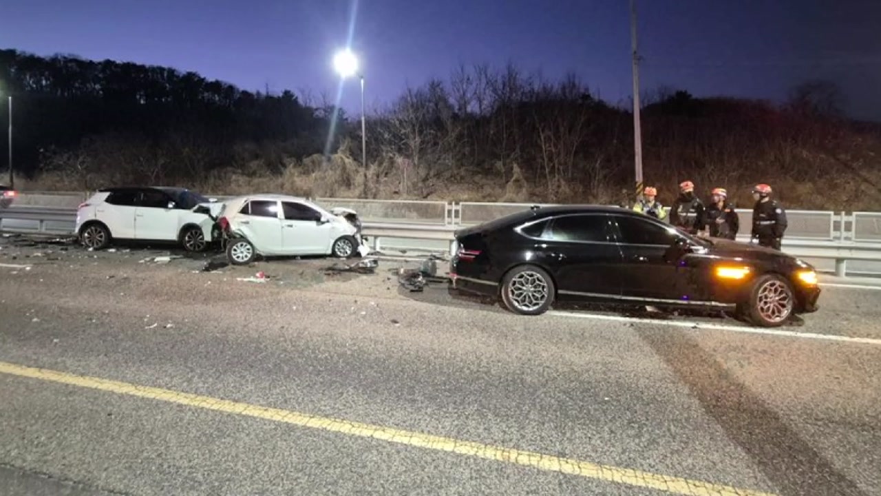 오늘(7일) 오후 5시 반쯤 울산 신현동에서 도로를 달리던 SUV가 앞서가던 승용차를 들이받으면서 차량 넉 대가 잇달아 부딪쳤습니다.