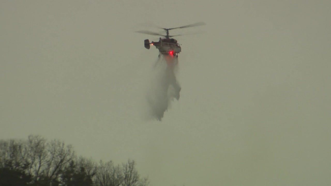 해가 뜨자마자 헬기 12대와 인력 5백여 명을 한꺼번에 투입해 잔불 정리를 완료했습니다.