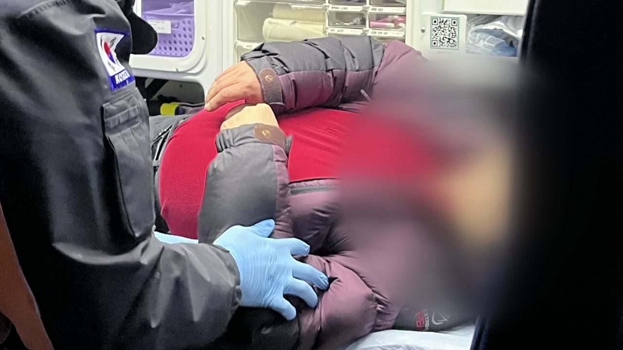 구급차에 올라타서도 어지럼증을 호소하며 몸을 제대로 가누지 못합니다.