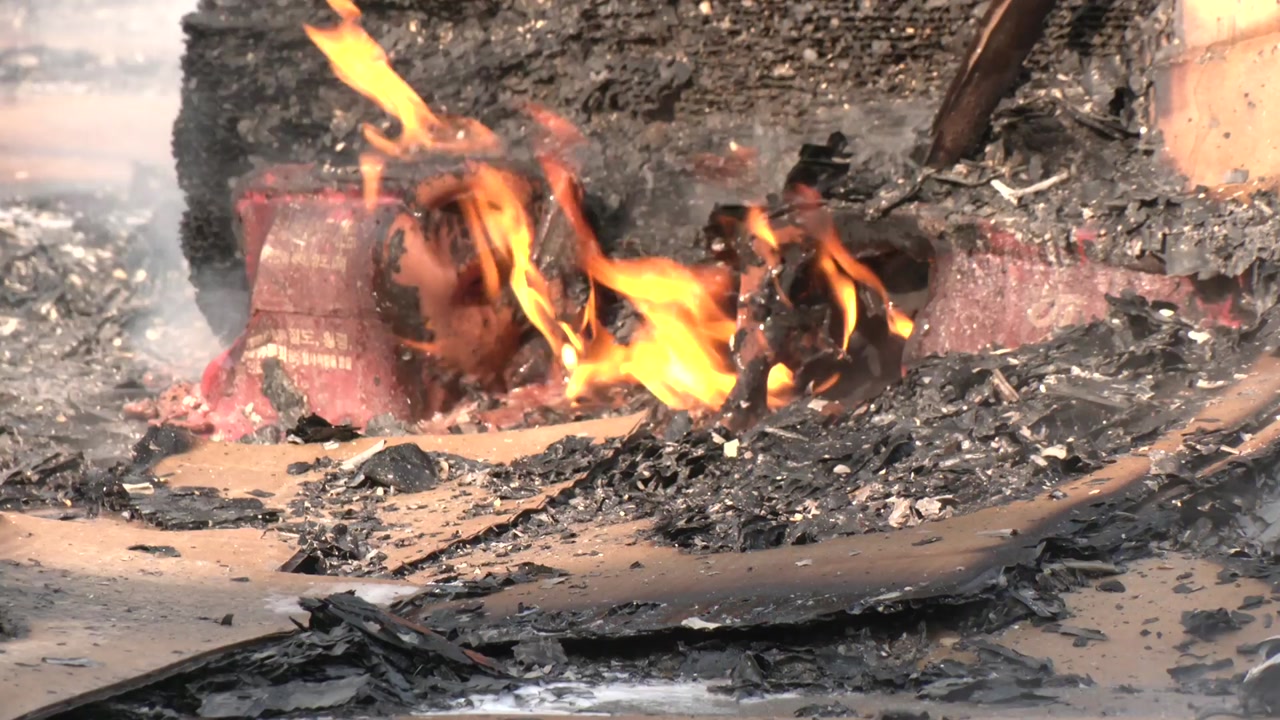 공장 내부는 보시는 것처럼 검게 그을렸습니다.