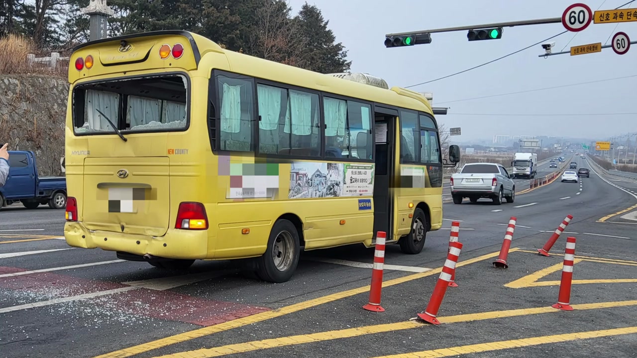 어제(15일) 낮 12시 10분쯤 전북 완주군 용진읍 도로에서 유치원 통학버스와 화물차가 부딪쳤습니다.