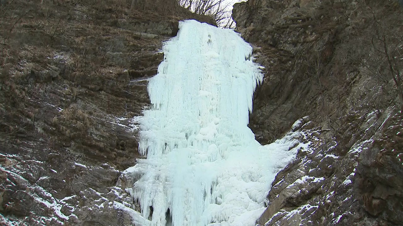 폭포가 한파에 꽁꽁 얼어붙었습니다.