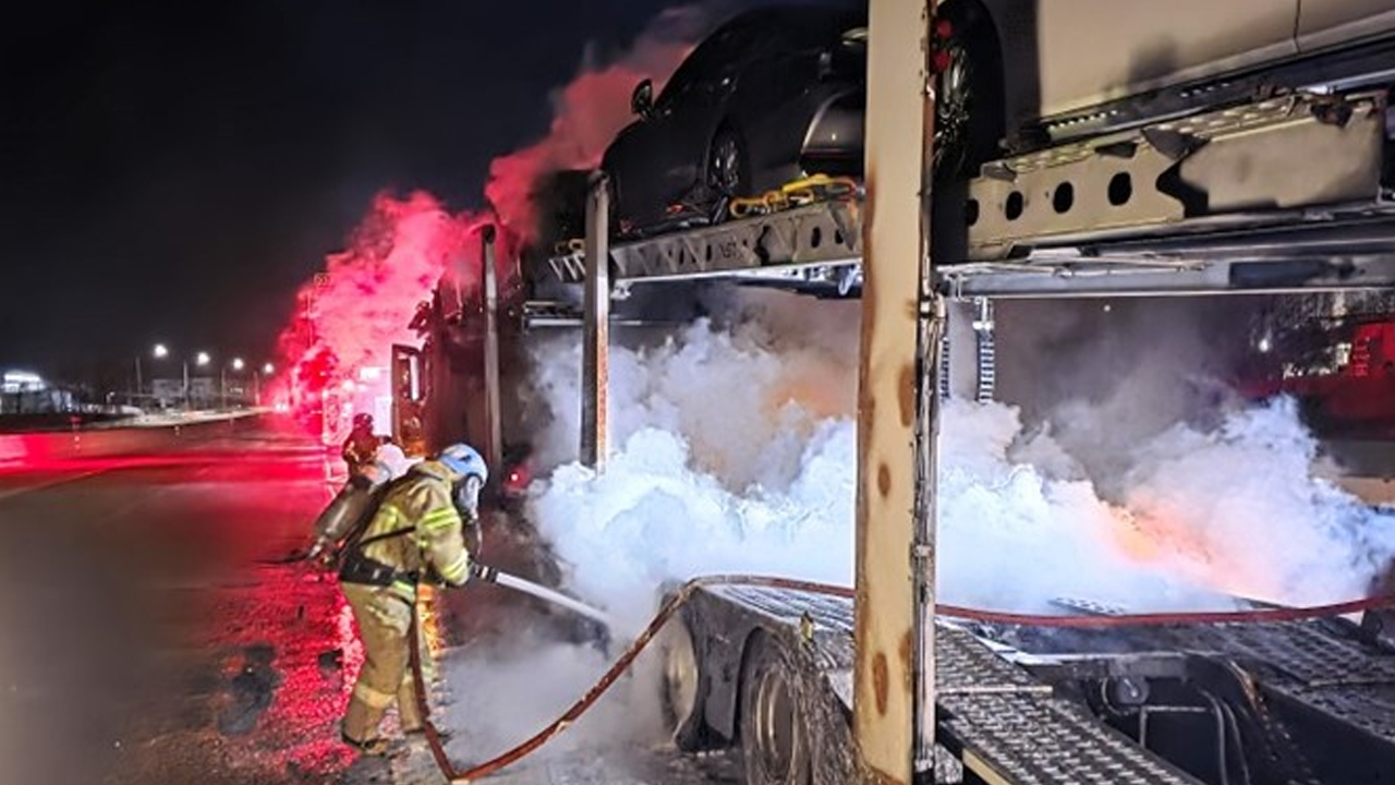 경찰과 소방당국은 탁송차 브레이크가 과열돼 불이 시작된 것으로 보고, 화재 원인을 조사하고 있습니다.