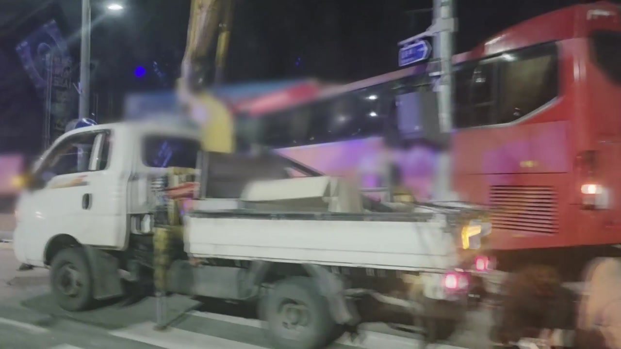 어제(21일) 저녁 8시쯤 강원 원주시 반곡동 국과수 사거리에서 관광버스가 승용차와 전신주를 들이받았습니다.