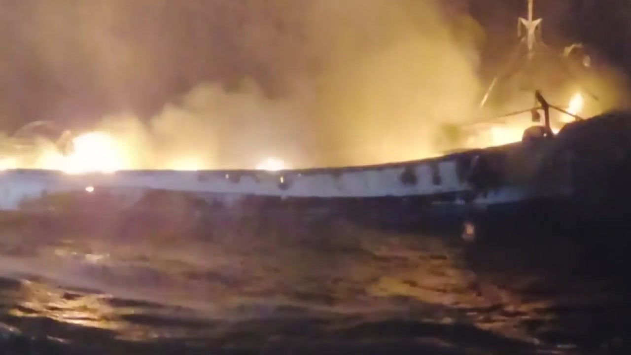 신고를 받은 해경은 오늘(27일) 새벽 1시쯤 화재 현장에 도착해 구명 뗏목으로 몸을 옮긴 승선원 6명을 모두 구조했습니다.