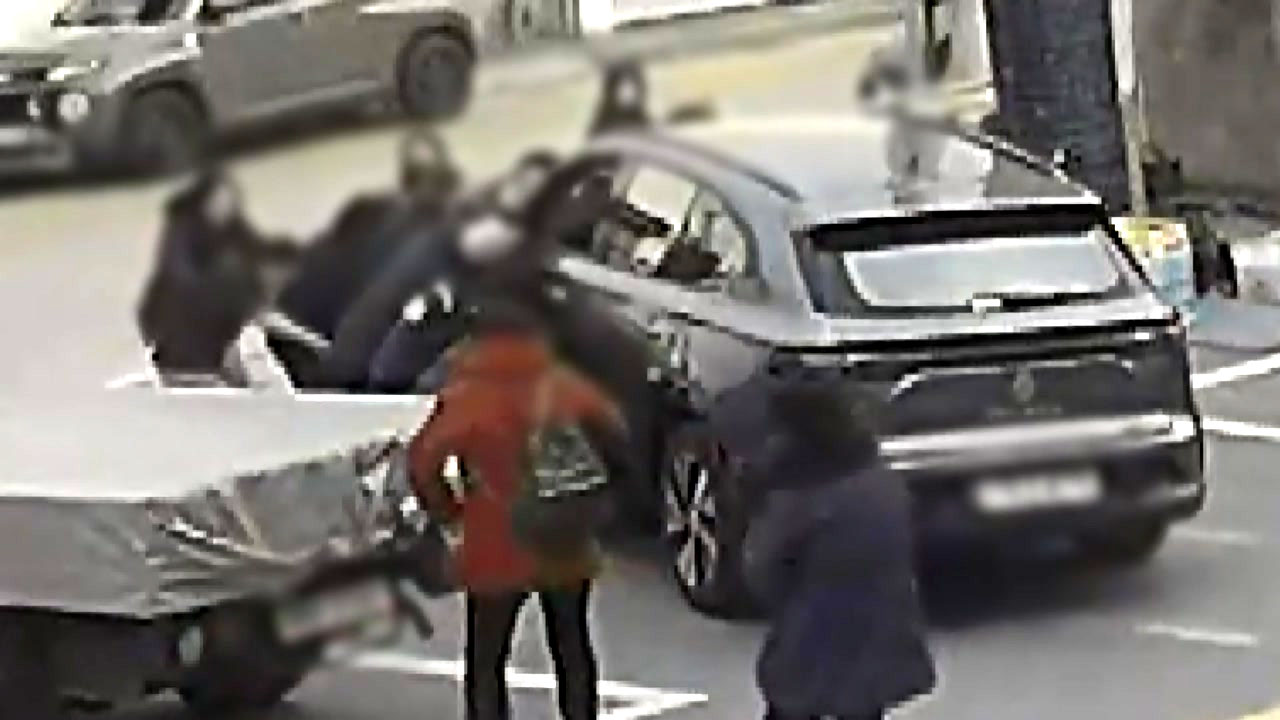 그 순간, 차 한 대가 그대로 여성을 덮칩니다.