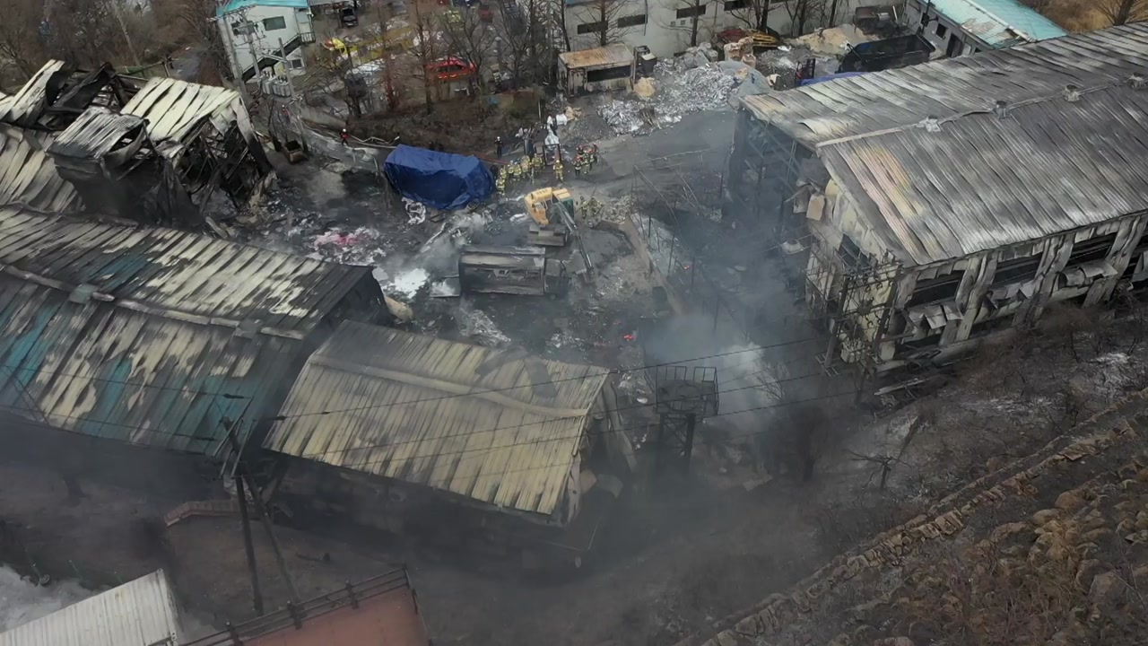 네, 공장의 불이 초진은 됐지만, 아직도 현장에는 희뿌연 연기가 피어 오르고 있습니다.