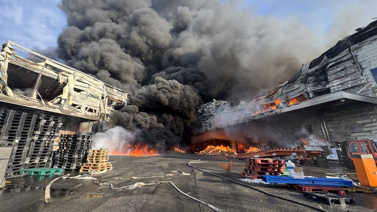 해당 공장은 기저귀와 물티슈 생산 공장으로 가연성 물질이 많아 진화에 어려움을 겪고 있습니다.