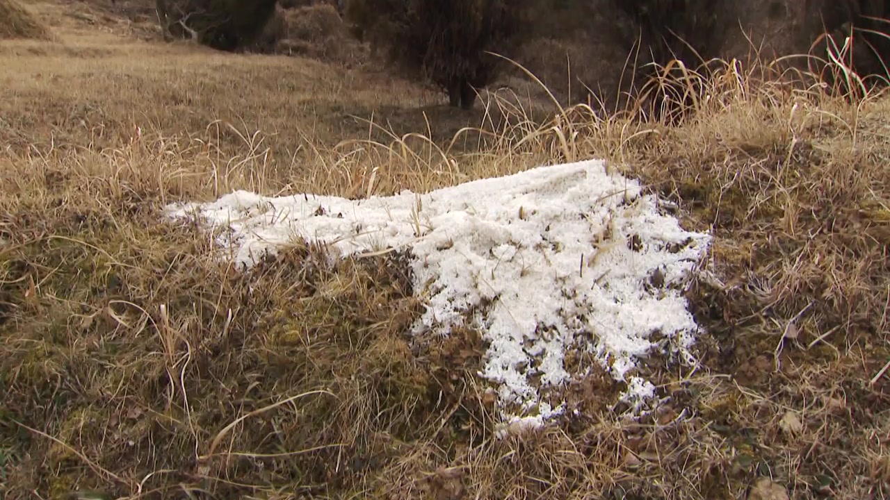 피해를 입은 묘소입니다. 묘소 위로 소금을 쏟아부은 것처럼 많은 양이 올려져 있습니다.