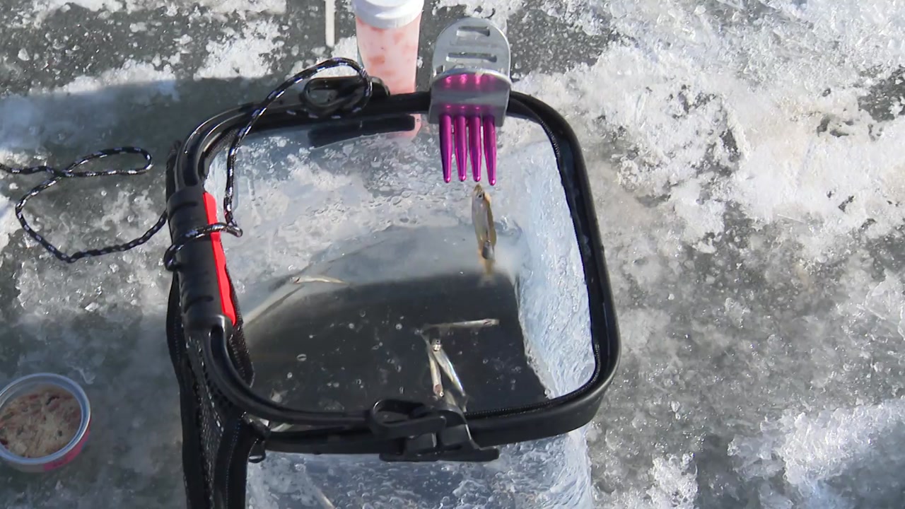 낚싯대를 드리우고 잠시 기다리자 금세 펄떡펄떡 뛰는 빙어가 잡힙니다.