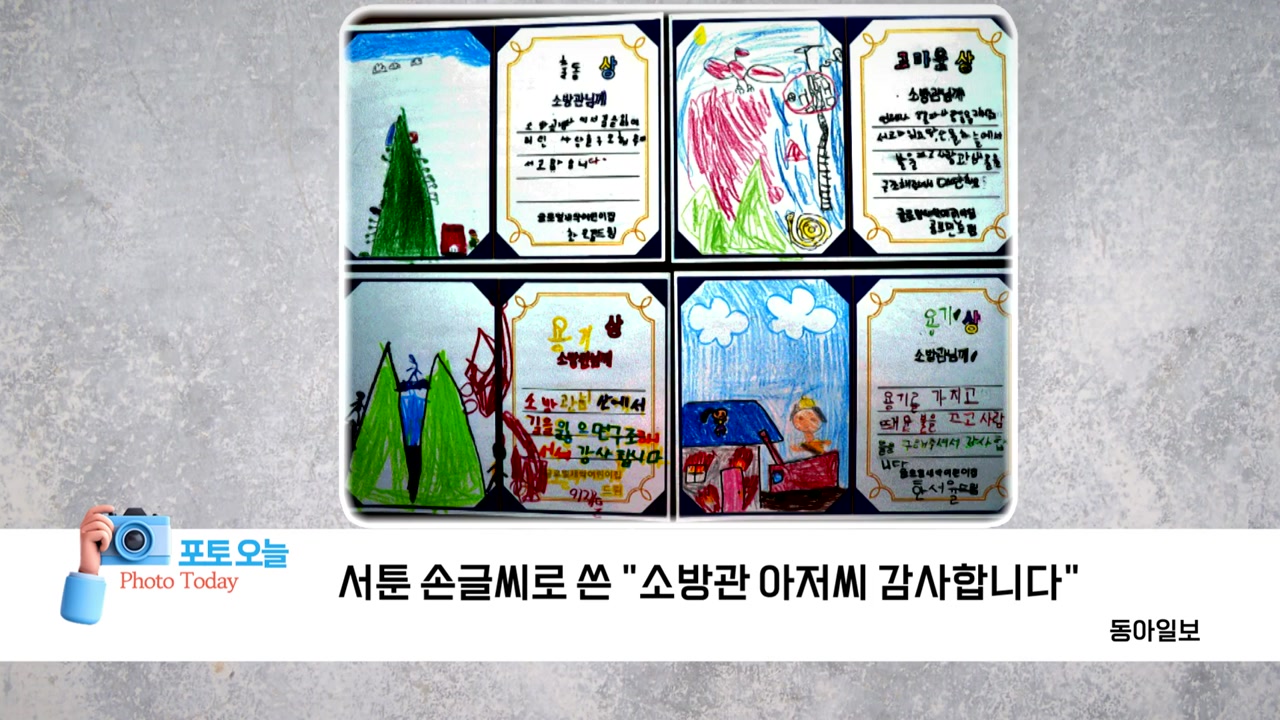 동아일보 P16면 : 서툰 손글씨로 쓴 "소방관 아저씨 감사합니다"