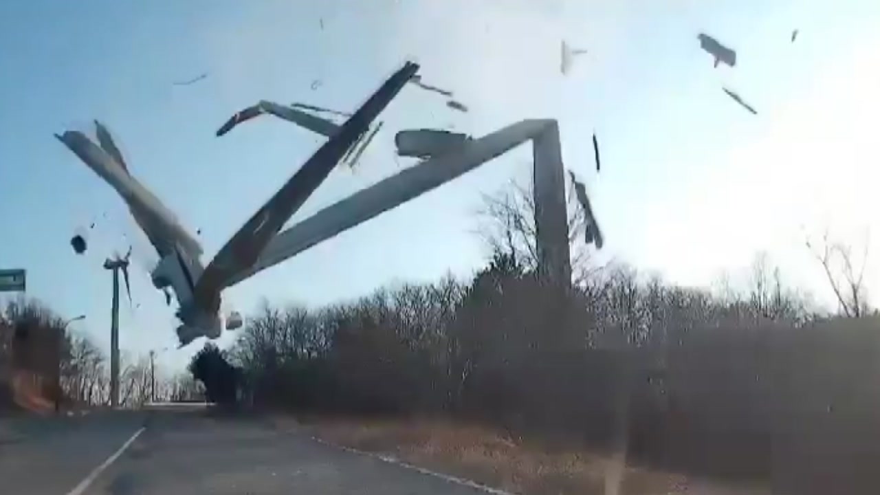 80m 풍력발전기, 갑자기 '쿵'...도로 덮쳐 통제
