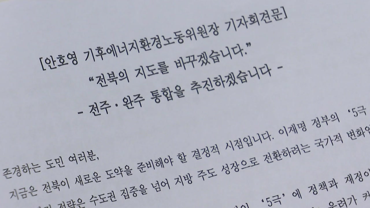 [김관영 / 전북도지사 : 안호영 의원의 결단에 깊이 감사드립니다. 저는 오늘 이 결단이 전북의 미래를 바꿀 역사적 분기점이 될 것이라고 확신합니다.]