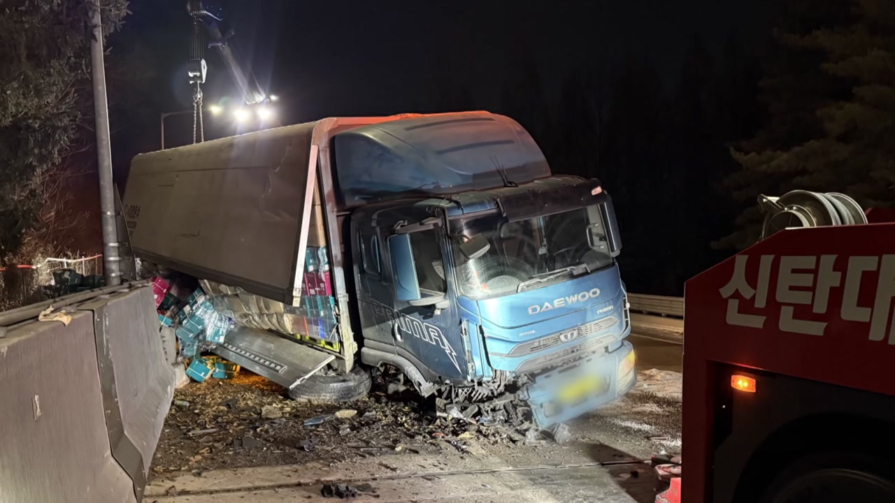 오늘(6일) 자정쯤 충북 청주시 남이분기점 인근 경부고속도로 부산 방향을 달리던 8.5톤 화물차가 가드레일을 들이받았습니다.