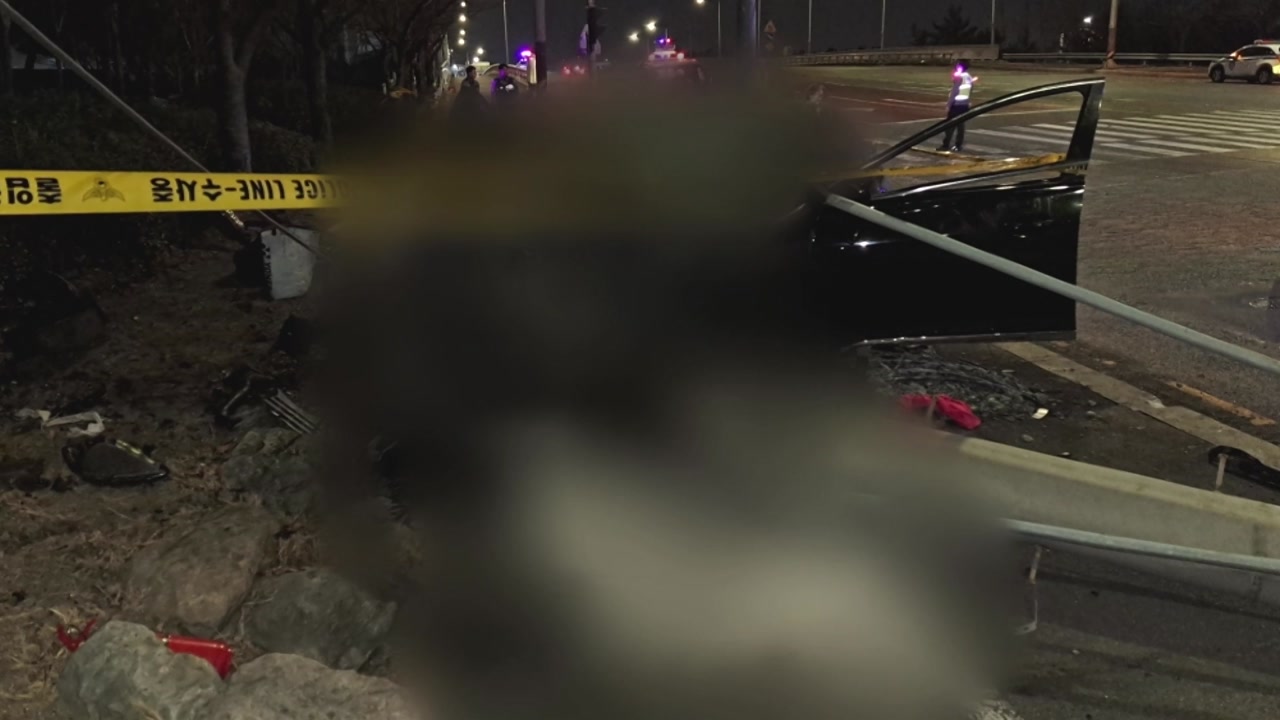 어젯밤(5일) 9시 반쯤 부산 송정동에 있는 교차로에서 40대 A 씨가 몰던 승용차가 전봇대를 들이받았습니다.