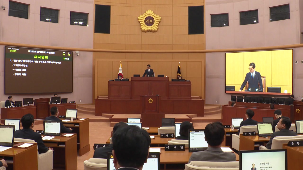 이번 결의안은 국민의힘 김진오 대전시의원 등 12명이 발의했고, 출석 의원 18명 중 찬성 16명, 반대 2명으로 시의회 본회의에서 통과됐습니다.