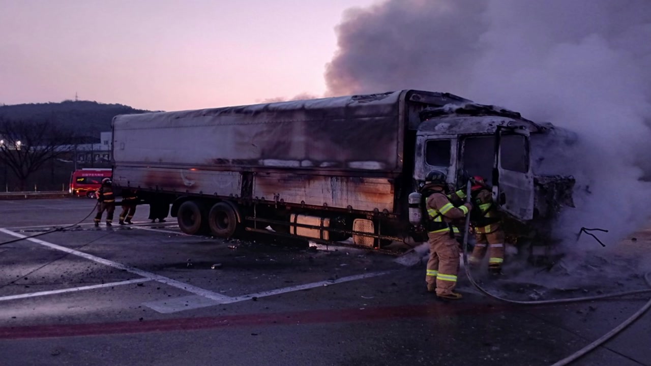 오늘(11일) 아침 7시쯤 경북 칠곡군 왜관읍 경부고속도로 칠곡휴게소에서 정차 중이던 대형 화물차에 불이 나 30분 만에 꺼졌습니다.