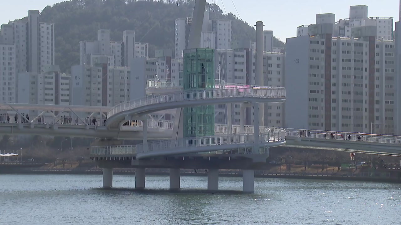 나루공원과 수영현대아파트를 연결하는 보행교는 254m 길이로 다음 달 개통 예정인데 차량과 자전거, 개인형 이동장치는 이용할 수 없습니다.