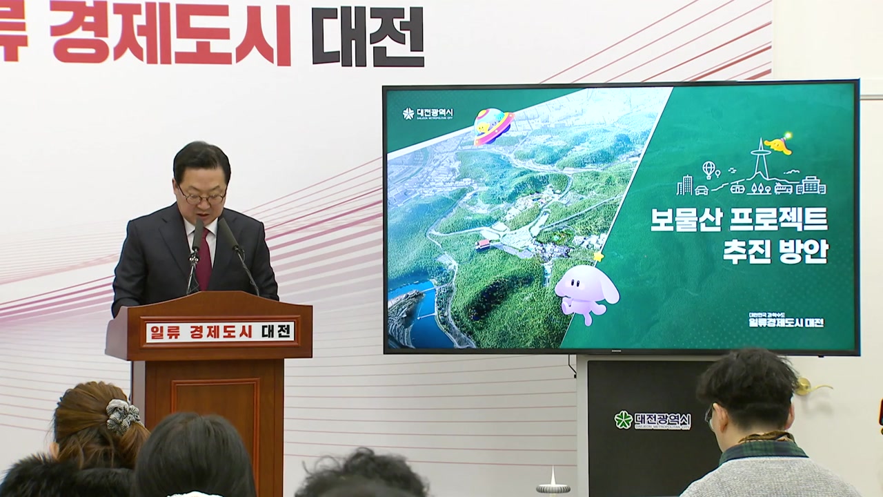 시는 금융시장 악화와 건설경기 침체로 민간 자본 유치가 어려워짐에 따라, 대전시 재정과 대전도시공사 자체 사업으로 '보물산 프로젝트'를 추진할 것이라고 밝혔습니다.
