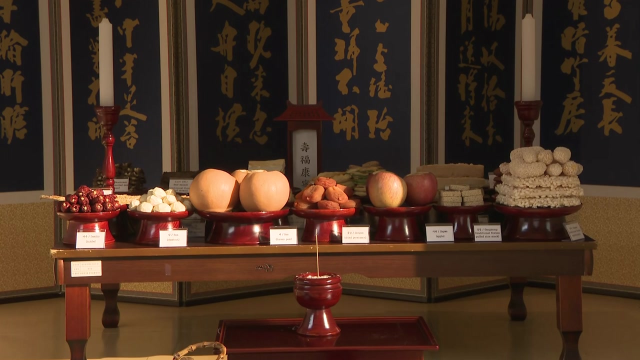 [송미란 요리 연구가 / '차례상' 전시 작가 : 요즘에 점점 풍습이 사라지고 있는 것 같아서 우리 차례상 옛날 풍습을 보여드리고 싶어서 검소하게 차렸습니다. 새해 맞이해서 옛날 풍습의 기억과 따뜻한 마음을 함께 나누고자 합니다.]