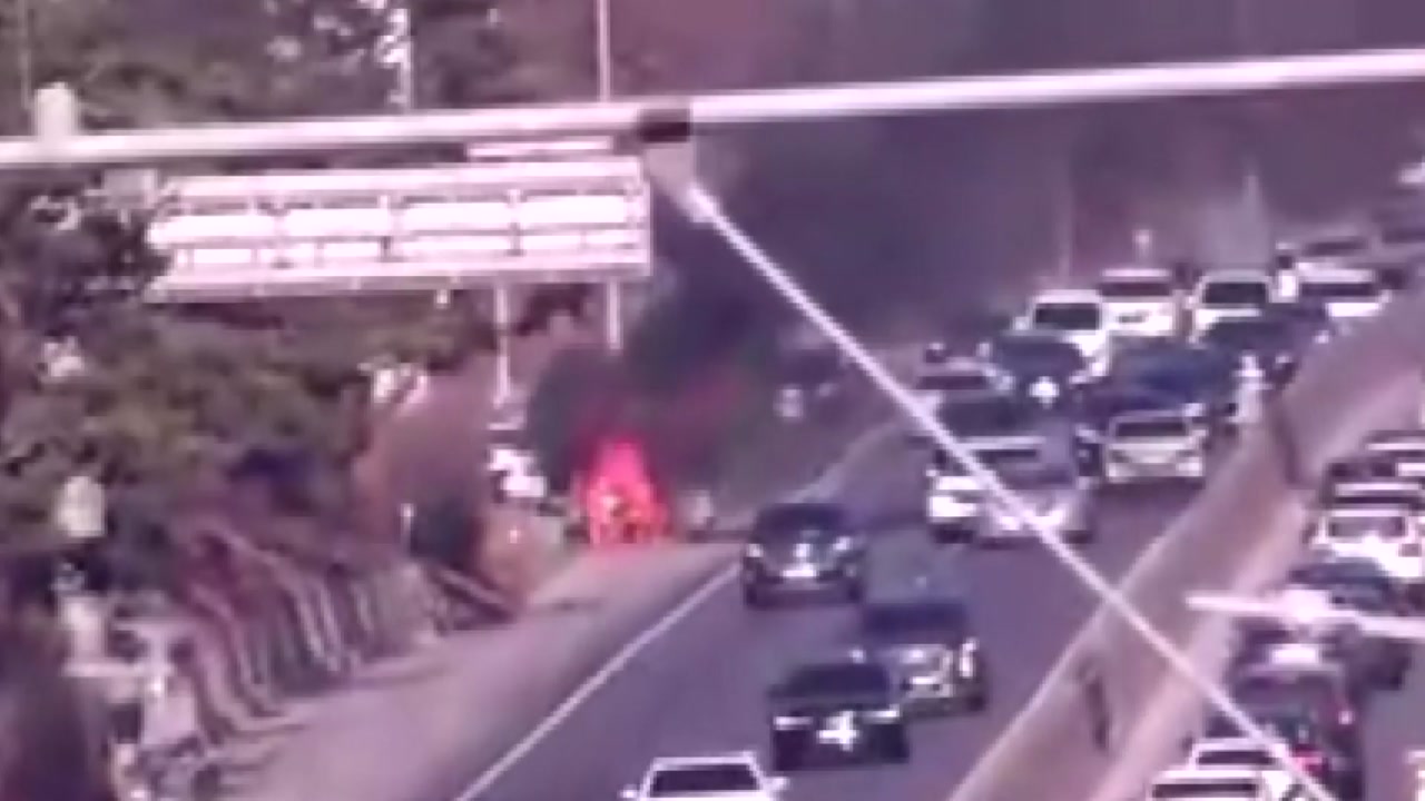 오늘(18일) 오후 2시 30분쯤 충북 청주 중부고속도로 대전 방향 오창휴게소 인근에서 승용차 한 대가 충격 흡수대를 들이받고 불이 났습니다.
