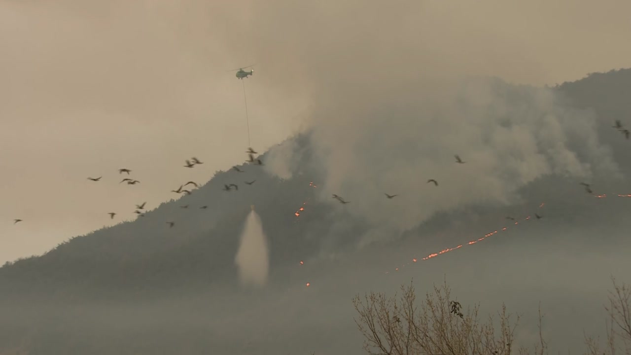 산림 당국은 어제 1단계였던 산불 대응 단계를 오늘 새벽 2단계로 올리고, 날이 밝자마자 헬기를 집중 투입해 주불을 잡는 데 성공했습니다.