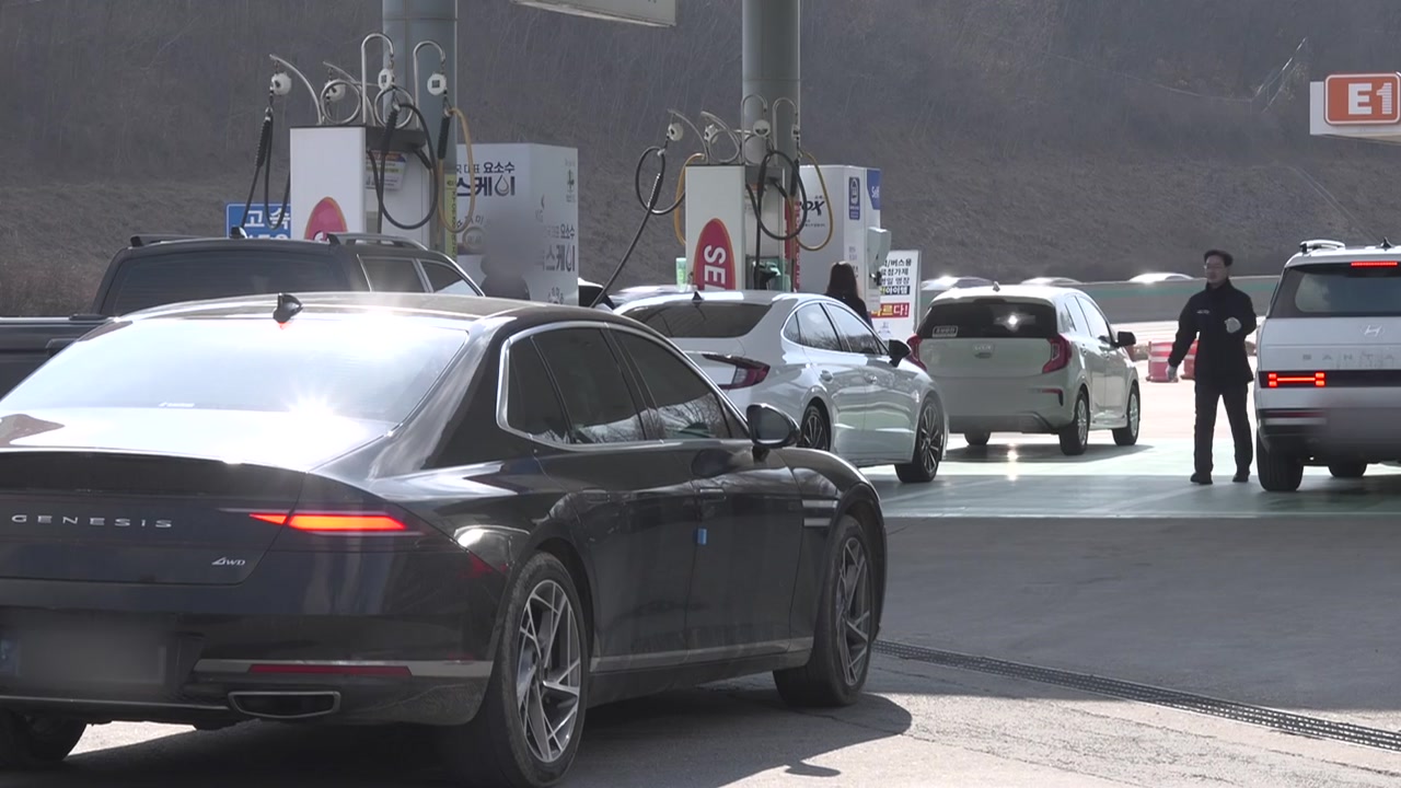 주유기 앞은 물론 진입로까지 차들이 꼬리에 꼬리를 물고 이어집니다.