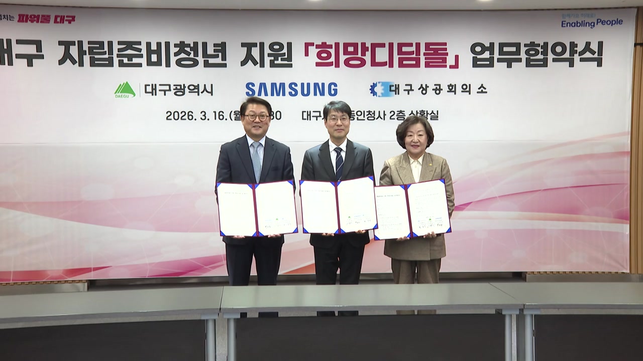 대구시는 삼성전자, 대구상공회의소와 '희망 디딤돌' 업무 협약을 맺고, 자립 준비 청년의 안정적인 정착과 취업 지원에 나섰습니다.