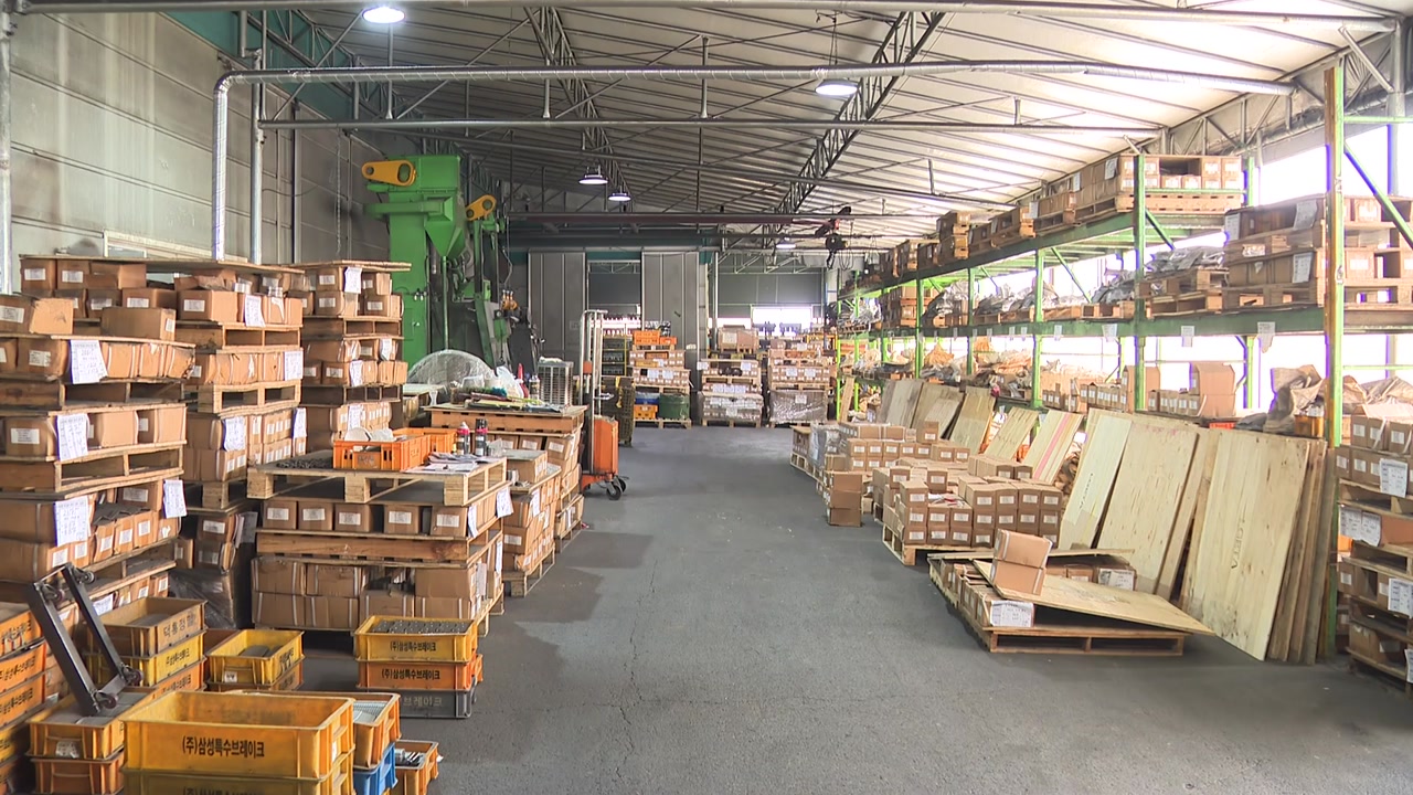 아랍에미리트 등으로 수출해야 할 자동차 부품이 창고에 그대로 쌓여 있습니다.