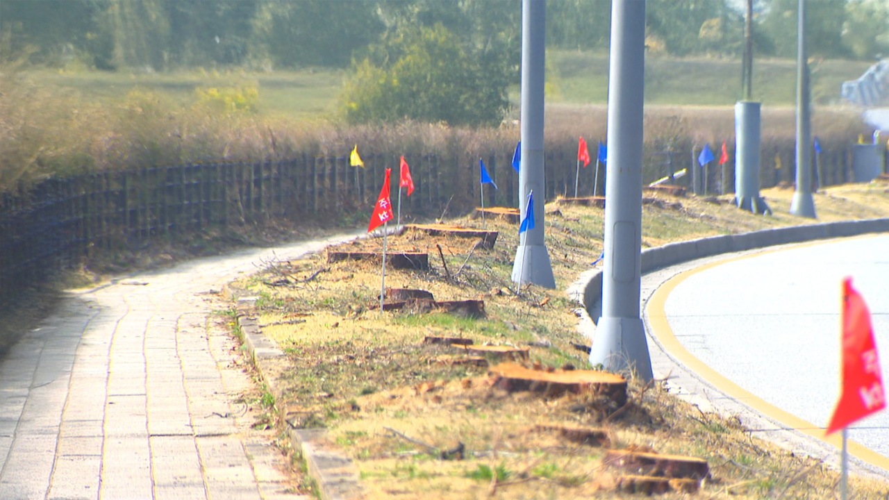 공사가 진행되는 3.3㎞ 구간에서 은행나무 3백여 그루와 왕벚나무 40여 그루가 이미 베어진 상황.