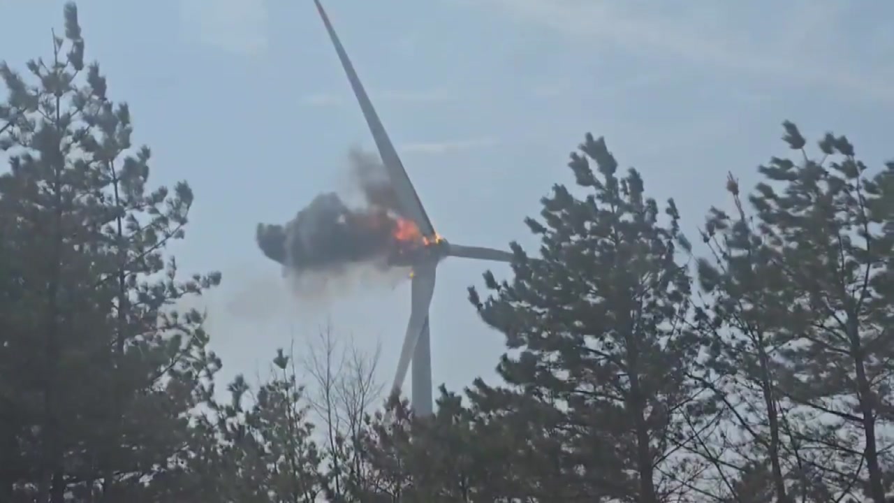 YTN으로 들어온 제보 영상을 보면 풍력발전기 터빈에 연기가 일더니 순식간에 불길이 퍼지는 모습을 확인할 수 있습니다.