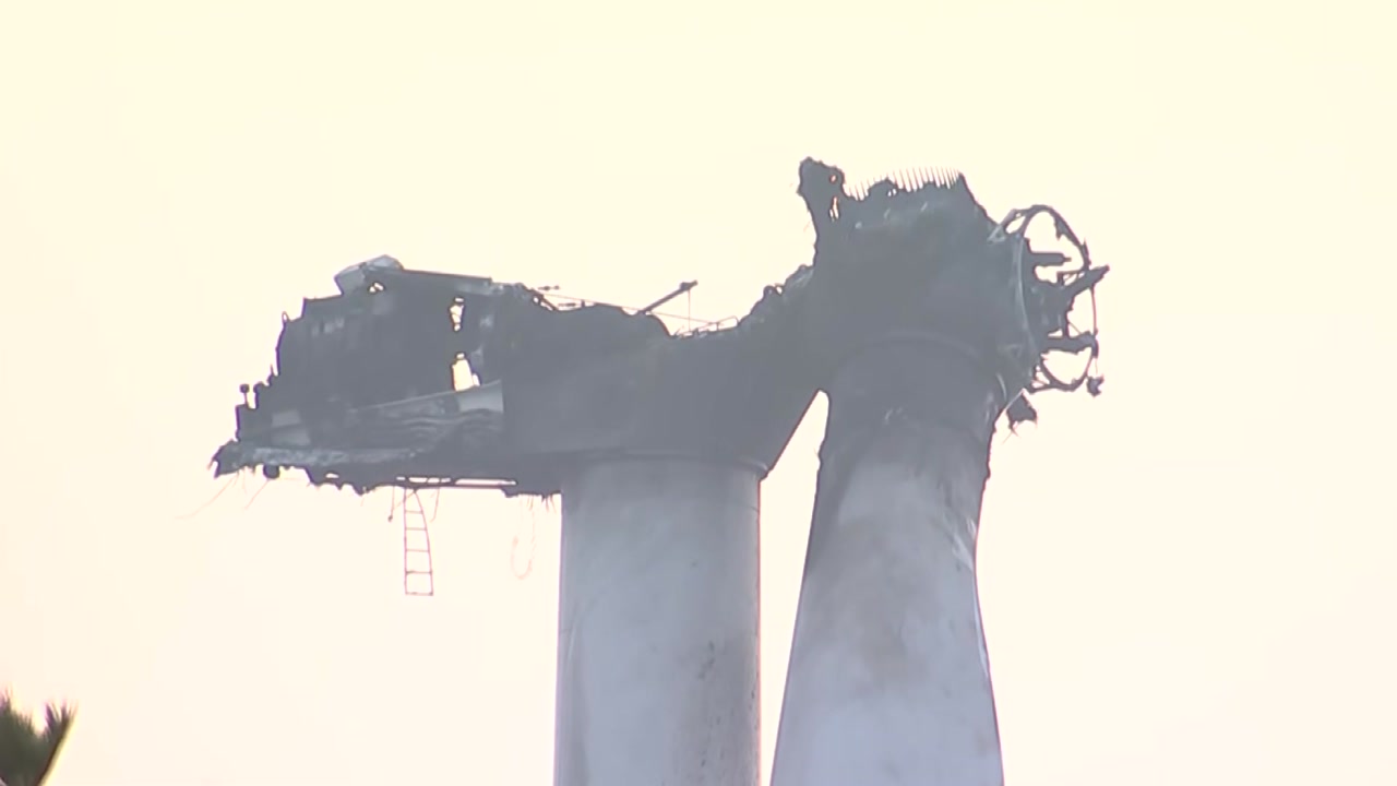 [목격자 : 불은 처음에 좀 붙었다가 다시 꺼지는 듯하더니 다시 또 바람이 여기 많이 불어서 불이 살아서 계속 더 타다가 블레이드 하나가 떨어졌어요.]