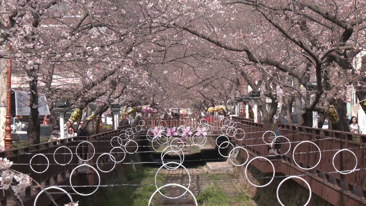 진해 군항제의 대표적 명소인 진해 여좌천에 꽃이 피기 시작했습니다.