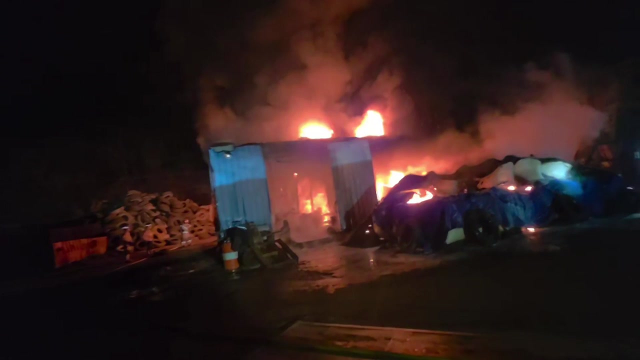 어제(27일) 새벽 4시 반쯤 전남 장성군 북이면에 있는 폐타이어 처리 공장에서 불이 났습니다.