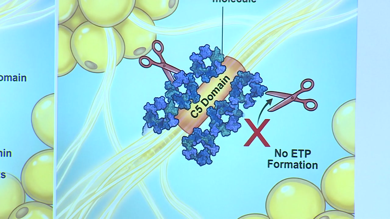 비만 지방 조직에선 MMP라는 단백질 분해효소가 콜라겐의 특정 부위에 결합해 콜라겐을 잘라내며 '엔도트로핀'을 생성합니다.