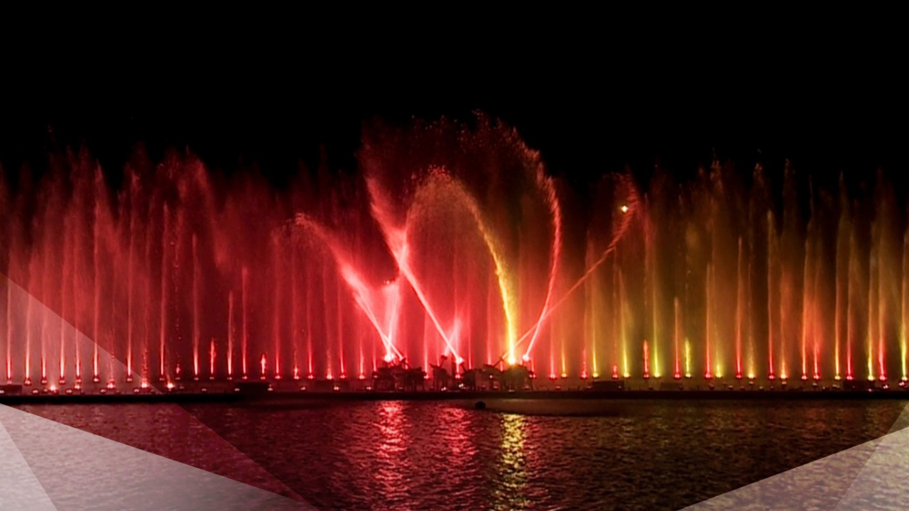길이 57m의 분수대가 최대 100m 높이까지 물줄기를 쏘아 올리며 압도적인 위용을 자랑합니다.